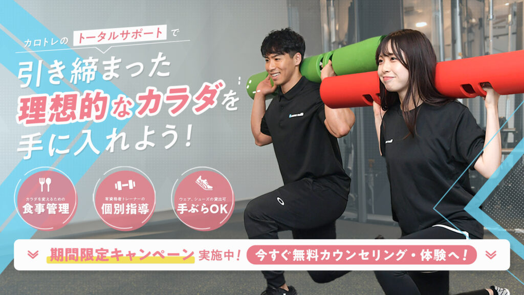 有資格者のパーソナルトレーナーがあなたの達成したい目標に向かってあなただけの特別な筋トレオリジナルメニュー・食事サポートで目標まで最短距離で徹底サポートします。