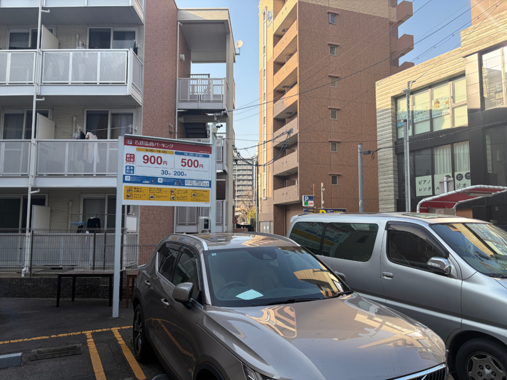 お車でご来店の際は近隣の名鉄協商パーキングをご利用ください。